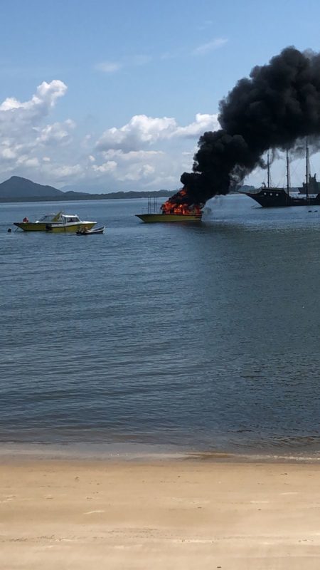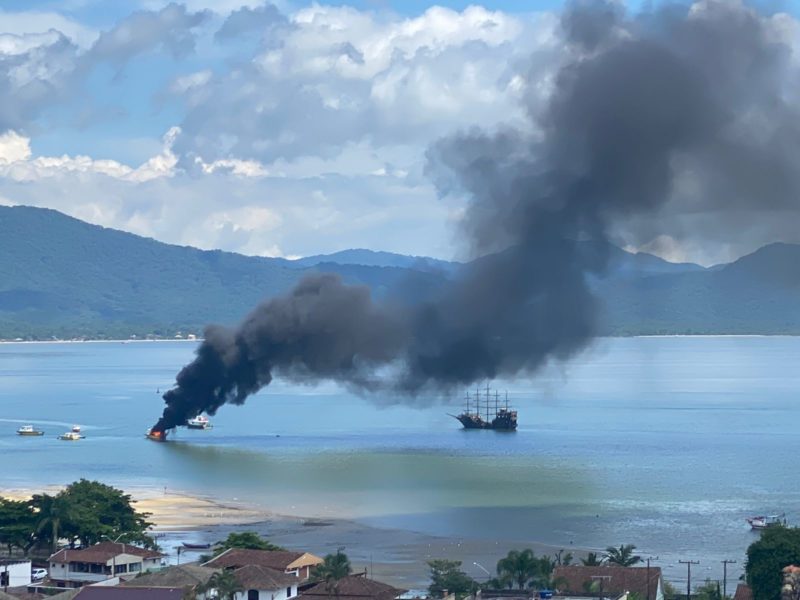 Um incêndio tomou conta de um barco em São Francisco do Sul, no Norte catarinense. O fogo começou na manhã de domingo (6), por volta das 10h, e no momento a equipe do Corpo de Bombeiros Voluntários da cidade está no local.