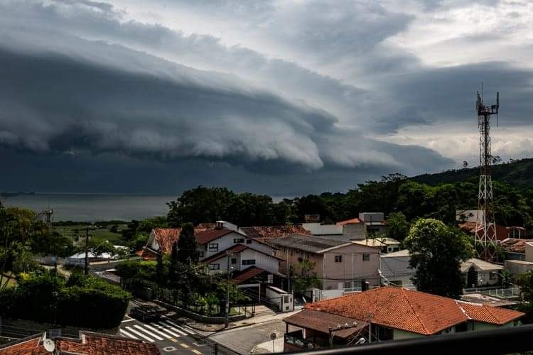 A formação de uma nuvem imensa sobre o litoral de Santa Catarina chamou a atenção neste sábado (11) e muitas imagens repercutiram nas redes sociais. Trata-se da nuvem shelf cloud. – Foto de Rafael Bernardino, em Governador Celso Ramos. - 2 de 15