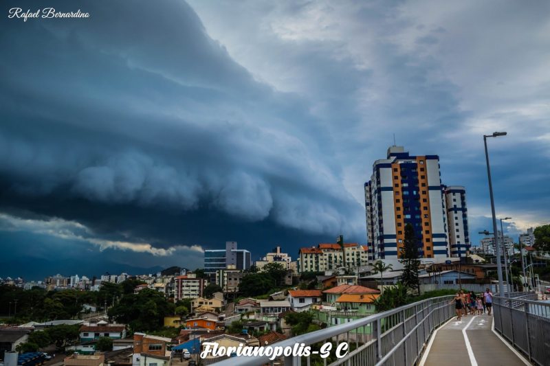 Nuvem que avançou na tarde deste sábado sobre Florianópolis, Governador Celso Ramos e Tijucas-. Rafael Bernardino/GeoClima - 11 de 15