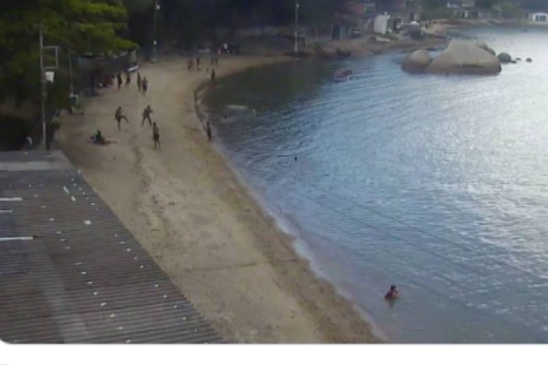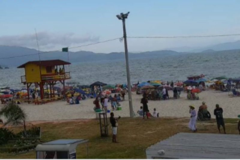 Pra quem estava no Norte da Ilha, a também alargada faixa de areia da Praia de Canasvieiras foi uma boa escolha – Foto: Reprodução/Twitter