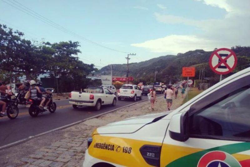 Logo no meio da tarde, a PMRv começou a registrar movimento intenso na SC-406, em frente à Praia Mole, em Florianópolis – Foto: /Divulgação/PMRv