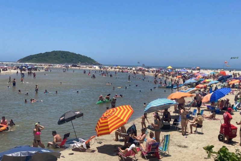 Centenas de banhistas curtiram as águas da Praia de Ibiraquera, em Imbituba – Foto: Osvaldo Sagaz/NDTV
