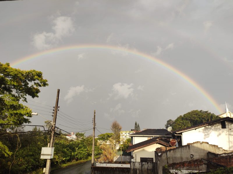 Com o fim do temporal, arco-íris também foram registrados nos céus de alguns municípios, entre eles, Joinville.