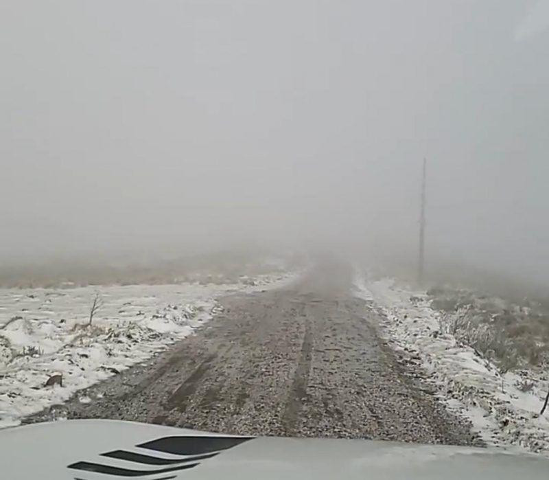 O fato foi ocasionado pela baixa pressão em frente ao litoral do Rio Grande do Sul trazendo umidade e instabilidade (nuvens de chuva), aliado ao ar polar que se deslocou da Argentina proporcionando o cenário tipicamente climático para a formação da Neve – Foto: Mycchel Legnaghi/@saojoaquimonline/ND