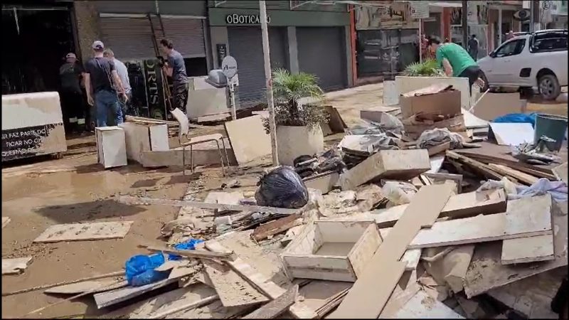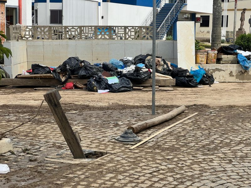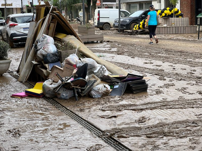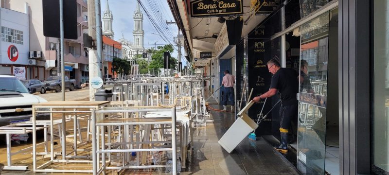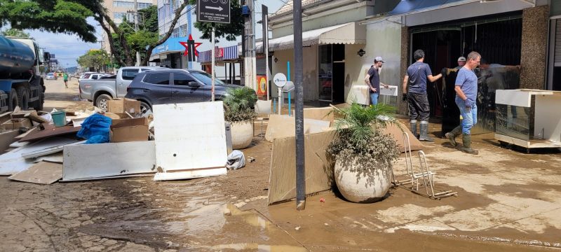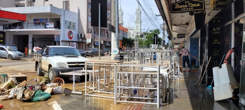 Sentimento é de angústia e aflição para alguns comerciantes, uma vez que há chance de a chuva voltar na quarta-feira (22). Cidade ainda não saiu totalmente da condição de enchente – Foto: Gabriela Szenczuk/NDTV - 32 de 39