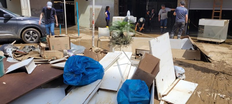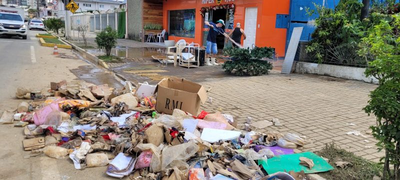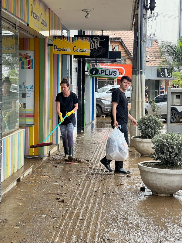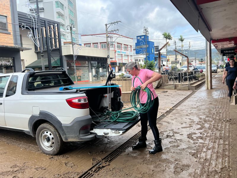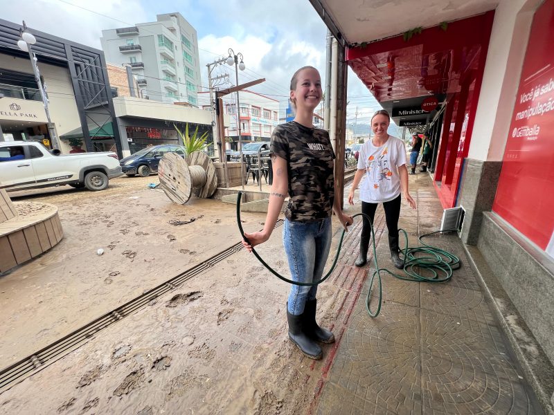 Moradores e comerciantes de Rio do Sul trabalharam durante o domingo (19) e também nesta segunda-feira (20) para limpar o que a água levou e recomeçar tudo outra vez – Foto: Gabriela Szenczuk/NDTV - 26 de 39