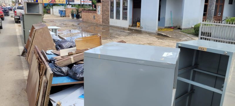 Material de escritório, como por exemplo mesas e cadeiras, também foi destruído pela inundação – Foto: Gabriela Szenczuk/NDTV - 36 de 39