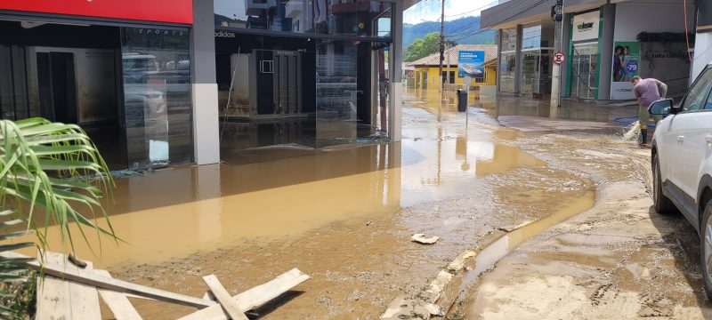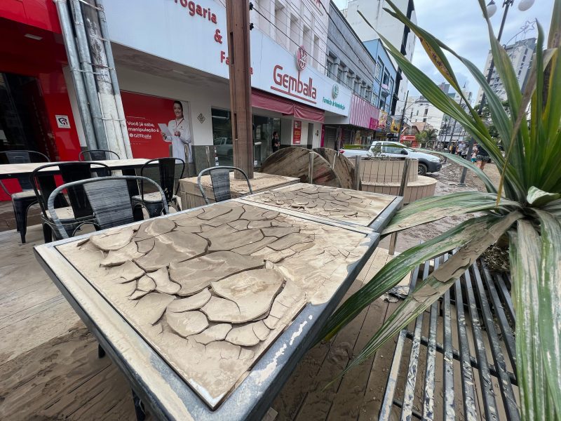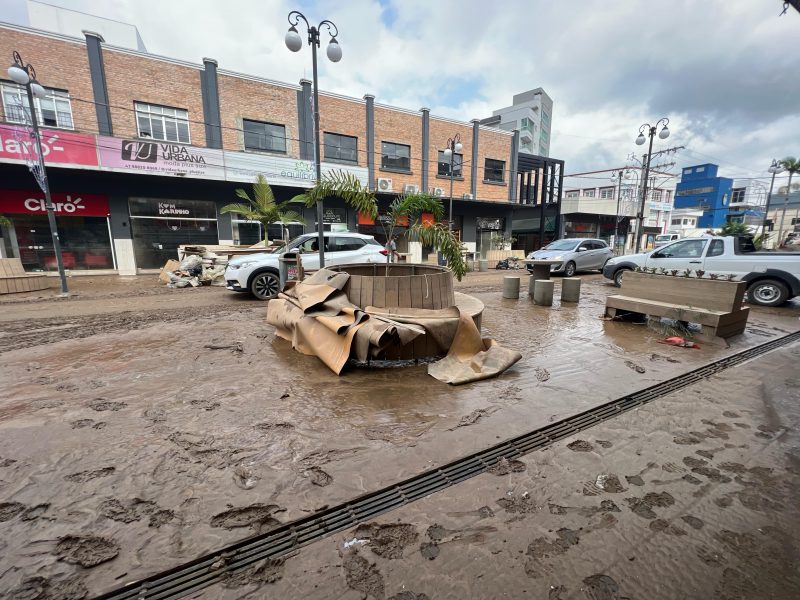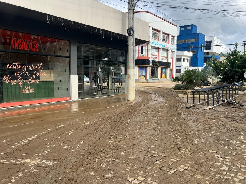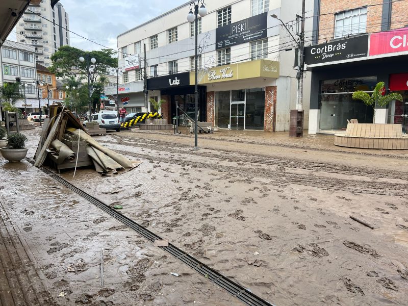 Ainda na manhã desta segunda-feira (20), havia muita lama no calçadão central de Rio do Sul – Foto: Gabriela Szenczuk/NDTV - 27 de 39