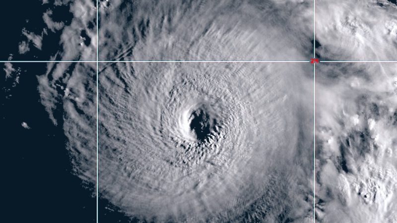 O super tufão Hinnamnor, considerado o mais intenso do ano, está no Oceano Pacífico rumo ao continente asiático, nesta quinta-feira (31). – Foto: Japan Meteorological Agency/ND - 2 de 5