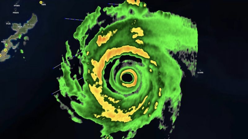 O fenômeno batizado de Hinnamnor é formado com rajadas de ventos que ultrapassam os 257 km/h, por isso foi classificado como super tufão, algo raro. – Foto: Word News/ND - 3 de 5