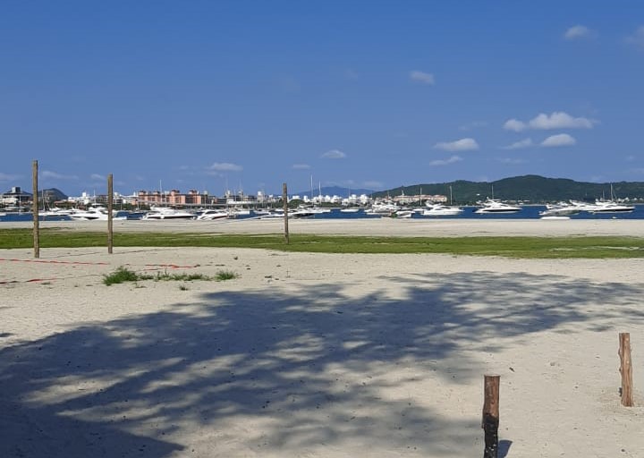 As áreas de lazer na faixa de areia do Norte da Ilha tiveram pouca procura, mesmo com o tempo bom. – Foto: Marcela Catelan/Divulgação/ND