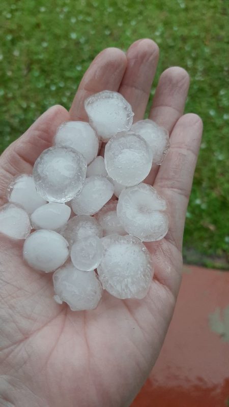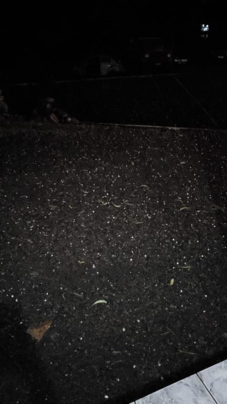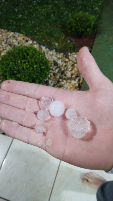 Após a chuva de granizo que ocorreu na tarde de sexta-feira (14), no Meio-Oeste de Santa Catarina, muitos internautas fotografaram as pedras de gelo e as imagens foram compartilhadas pelas redes sociais.