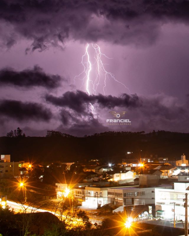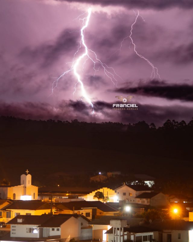 Uma tempestade de raios iluminou Ituporanga, no Alto Vale do Itajaí, neste domingo (3). O fenômeno transformou o céu da cidade. – Foto: Franciel Imagens Aéreas/Reprodução/ND - 2 de 4