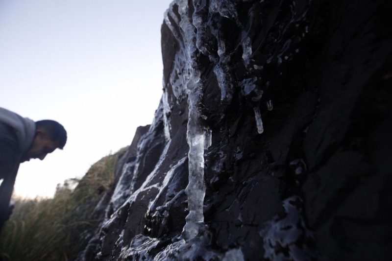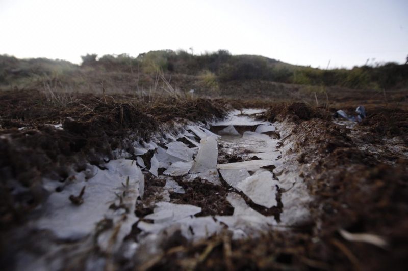 Se formou uma fina camada de gelo pelas plantações. – Foto: Felipe Kreusch/ND - 8 de 21