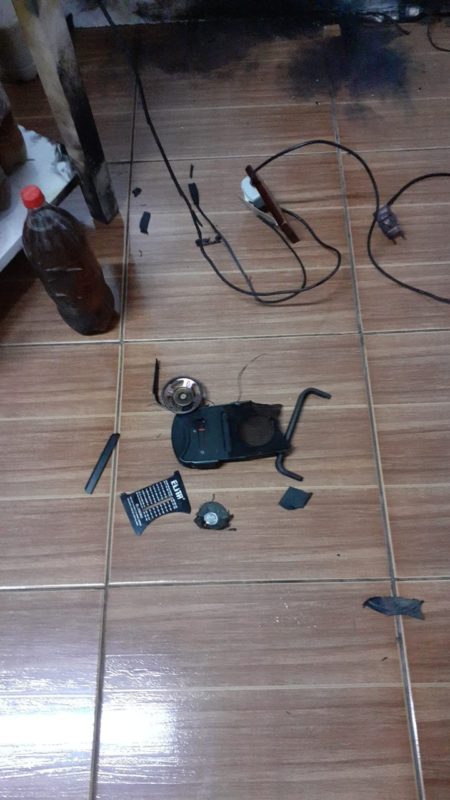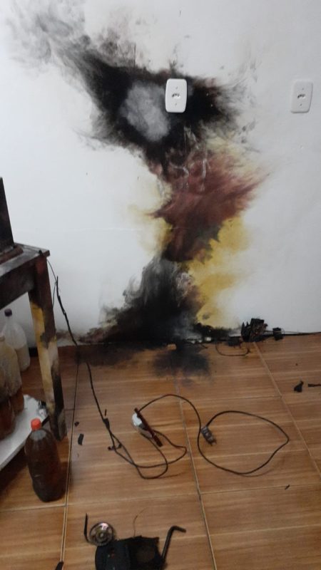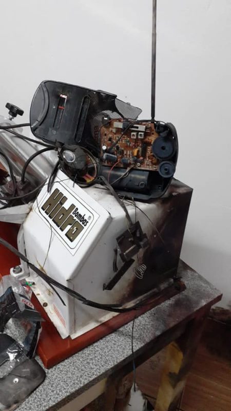 Fotos mostram alguns equipamentos que foram danificados. A força do raio explodiu uma tomada. Neusa chegou a cair cerca de dois metros de distância em decorrência do susto que levou. – Foto: Gilmar Bortese/Divulgação/ND - 4 de 4