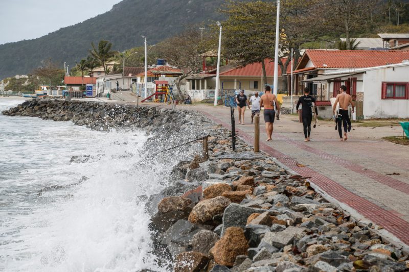 Por conta disso, segue o alerta para que evite atividades de pesca e esportes aquáticos no litoral de SC. Assim como evite caminhar ou pedalar próximo da orla da praia, caso o mar esteja cobrindo a calçada – Foto: Anderson Coelho/ND