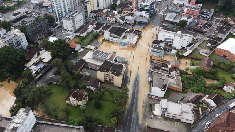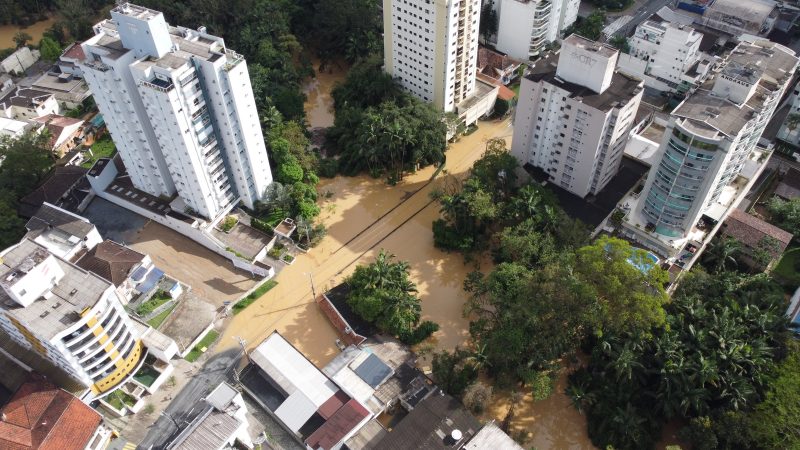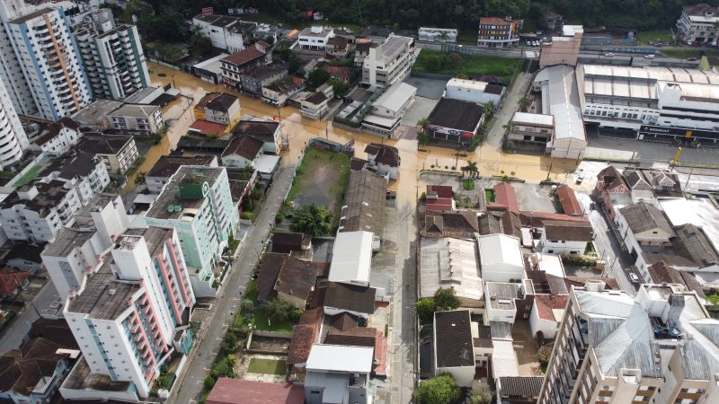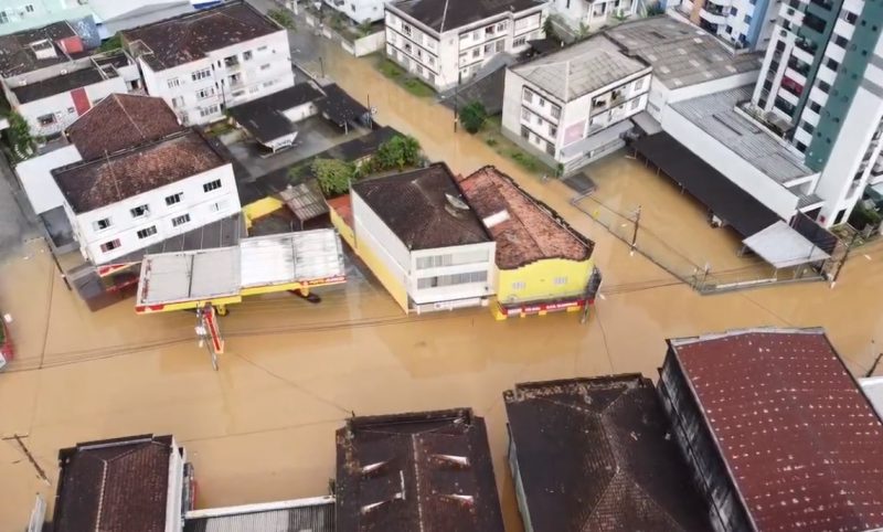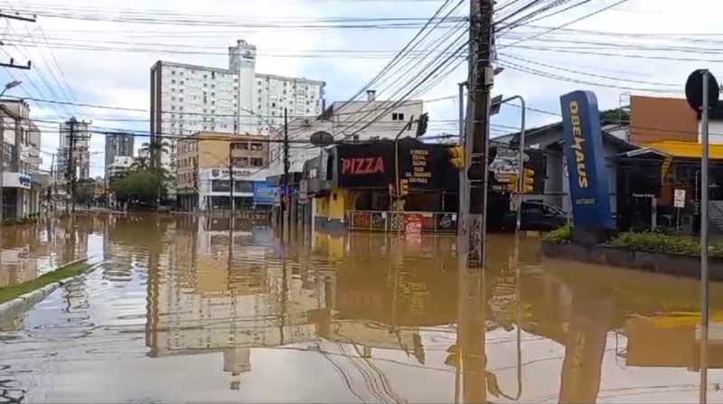 Rua São Paulo, na altura das esquinas com as ruas Camboriú e Desembargador Pedro Silva, alagou com 9,40 metros – Foto: Erison Krueger Schneider/Imagens cedidas/Divulgação/ND - 9 de 11