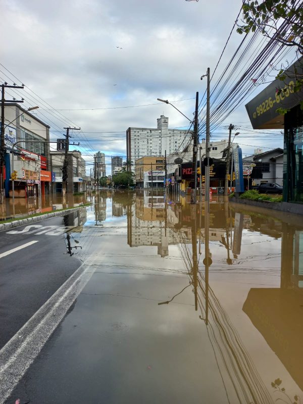 Outro ponto de alagamento registrado nesta segunda-feira (9) foi a rua 7 de Setembro, onde a cota de enchente da parte mais baixa é de 9,60 metros – Foto: Erison Krueger Schneider/Imagens cedidas/Divulgação/ND - 4 de 11