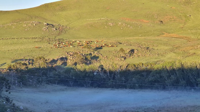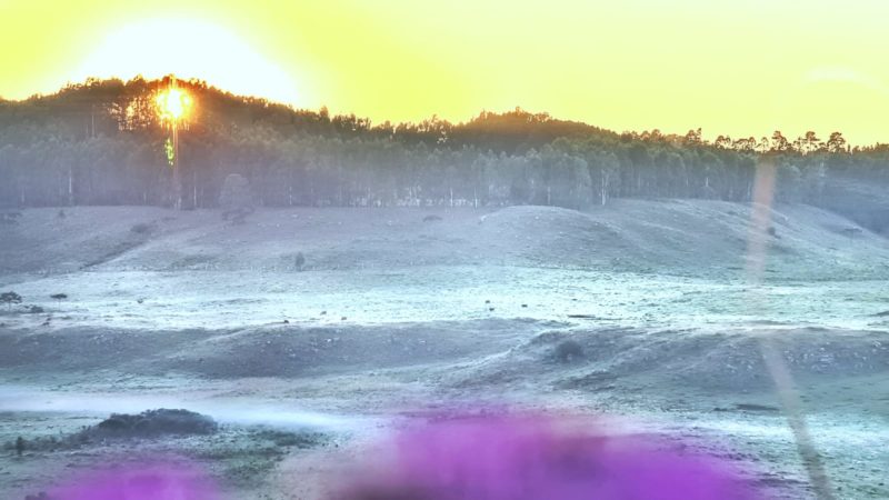 Dessa forma, o clima ameno favoreceu a formação de geada que cobriu o campo de São Miguel – Foto: Mycchel Legnaghi / São Joaquim Online/ND