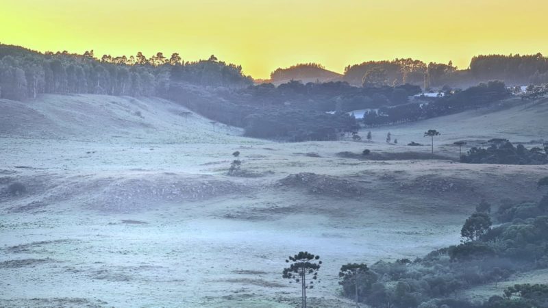 As mínimas nas cidades do topo da Serra variaram de 3°C até 5°C – Foto: Mycchel Legnaghi / São Joaquim Online/ND