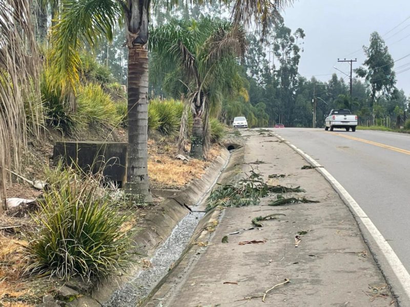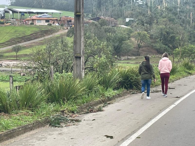 No começo da manhã desta segunda-feira a Prefeita Alice Bayerl Grosskopf, o Vice-prefeito Matheus Fuckner e equipes da Prefeitura estavam em campo nas localidades mais afetadas que foram Bateias de Baixo, Bateias de Cima e Saltinho visitando as famílias e colaborando com a retirada de galhos, árvores e outros materiais.