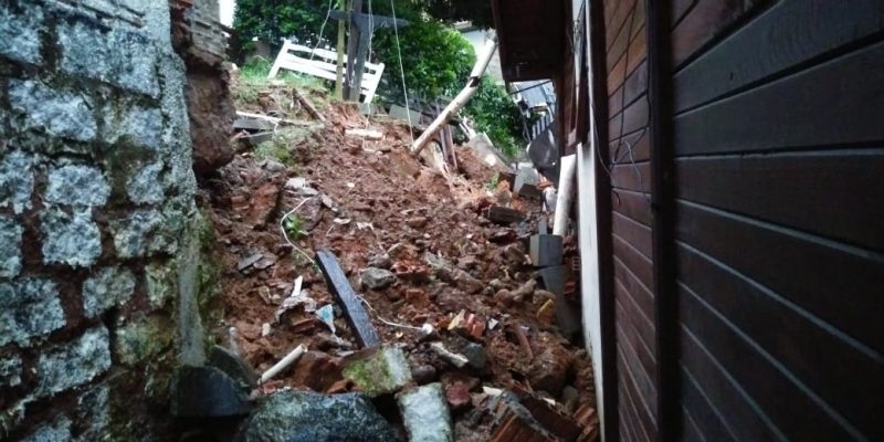 Bombeiros militares foram acionados por volta das 5h10 desta quinta-feira (21) por causa de um deslizamento de terra no bairro Agronômica, na região central da Ilha. Sedimentos atingiram uma casa e moradores tiveram que se deslocar para a residência de familiares – Foto: Defesa Civil/Divulgação/ND - 9 de 12