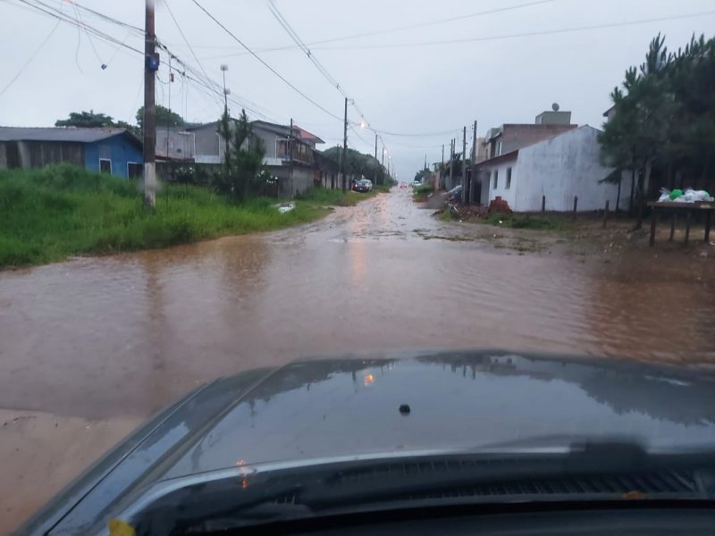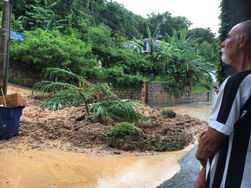 Rua no bairro Rio Vermelho, também no Norte da Ilha, em Florianópolis, ficou alagada – Foto: Osvaldo Sagaz/NDTV