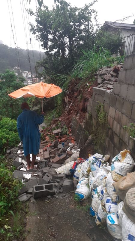 No Saco dos Limões, deslizamentos danificaram o muro de uma escadaria. Volume de chuva chegou a 48,4 mm, nas primeiras seis horas da quinta-feira (21), na região central da Ilha – Foto: Defesa Civil/Divugação/ND - 7 de 12