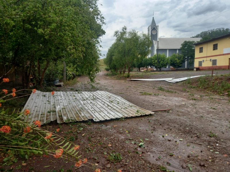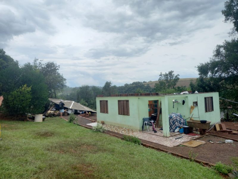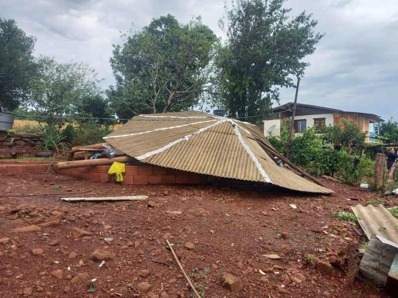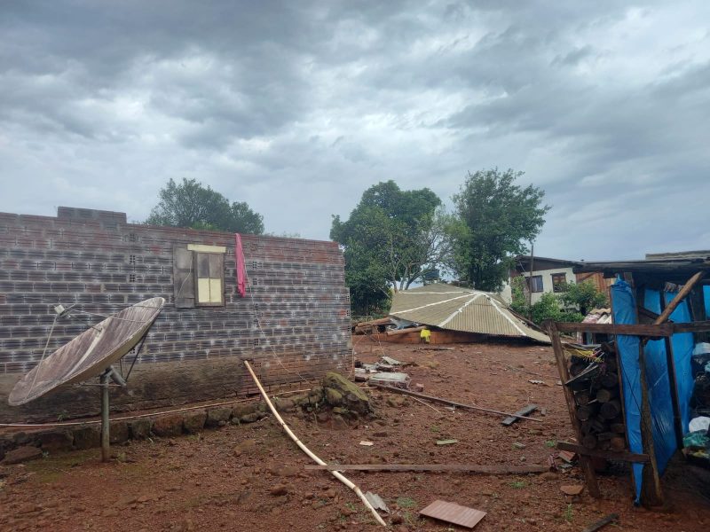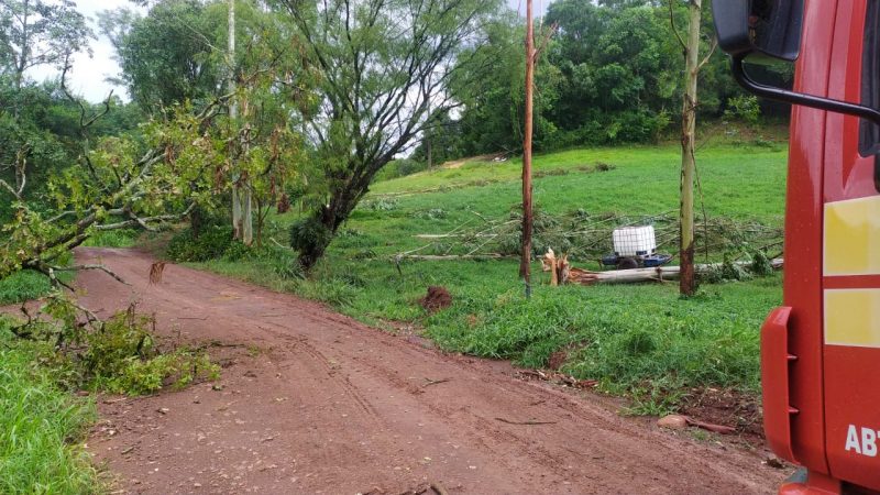 Uma casa foi totalmente destelhada e também foram atendidos destelhamentos de edificações agrícolas e pontos com queda de energia elétrica. – Foto: Corpo de Bombeiros/Divulgação/ND - 7 de 8