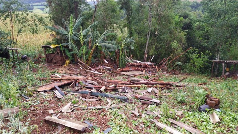 Um vendaval causou estragos no interior do município de Itapiranga, no Extremo-Oeste de Santa Catarina. – Foto: Corpo de Bombeiros/Divulgação/ND - 2 de 8