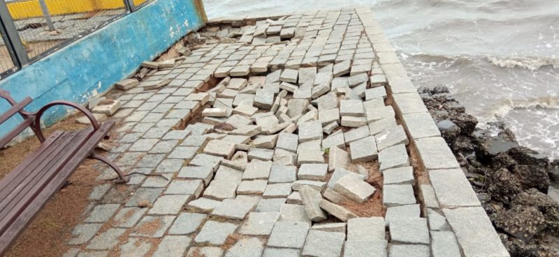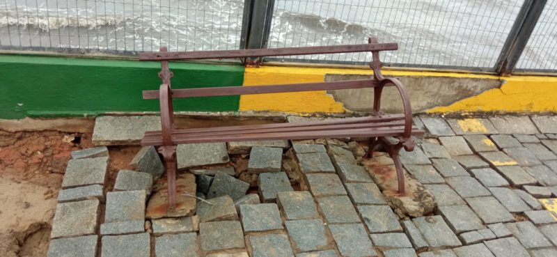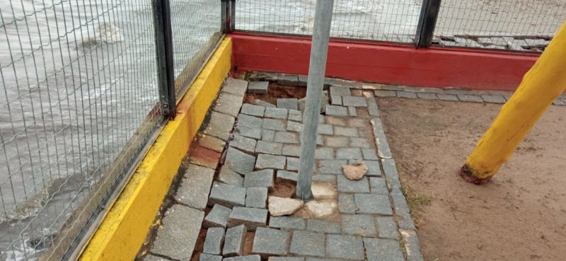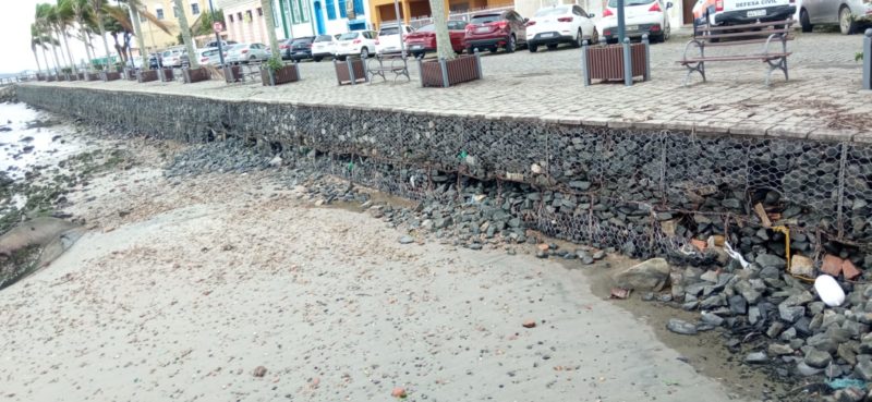 Já em São Francisco do Sul, a ressaca causou estragos em um muro de contenção e em calçadas na praia do Mota, revirando os paralelepípedos que fazem parte das estruturas.