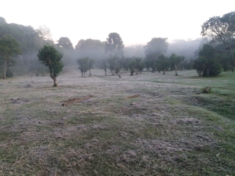 Campos ficaram branquinhos na localidade de Fartura, no interior de Canoinhas – Foto: Luiz Felipe Marschalk/JMais