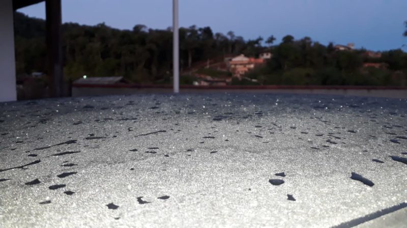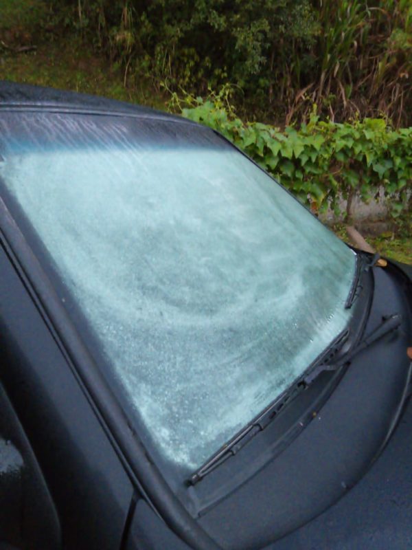 Blumenau, a maior cidade do Vale do Itajaí amanheceu gelada. Segundo o Alertablu, os termômetros marcaram 7,77°C. Porém, em algumas regiões mais geladas da cidade, alguns moradores fizeram registros de carros com os vidros e o teto com gelo, demonstrando que alguns locais podem ter registrado temperaturas mais baixas. – Foto: Moisés Stuker/NDTV - 2 de 7