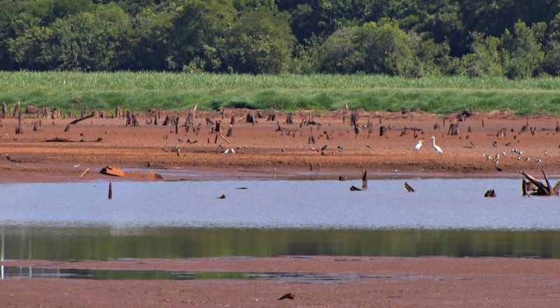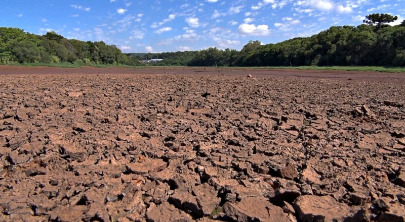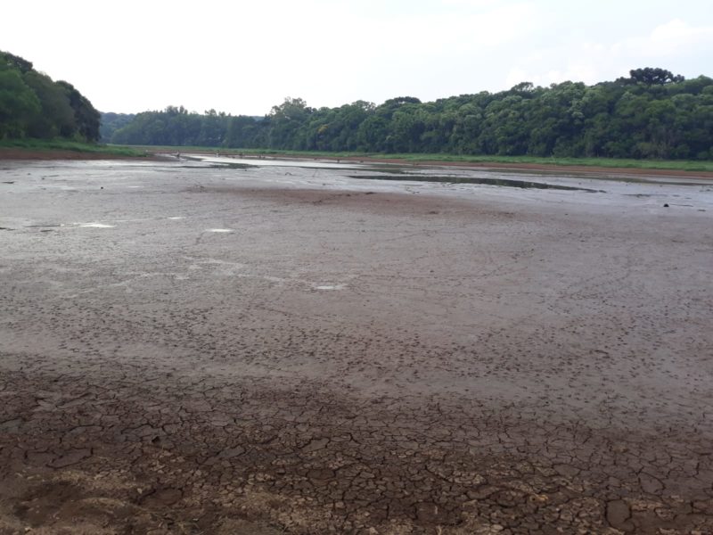 O barro rachado evidencia o baixo nível do lajeado. – Foto: NDTV/ND - 5 de 6