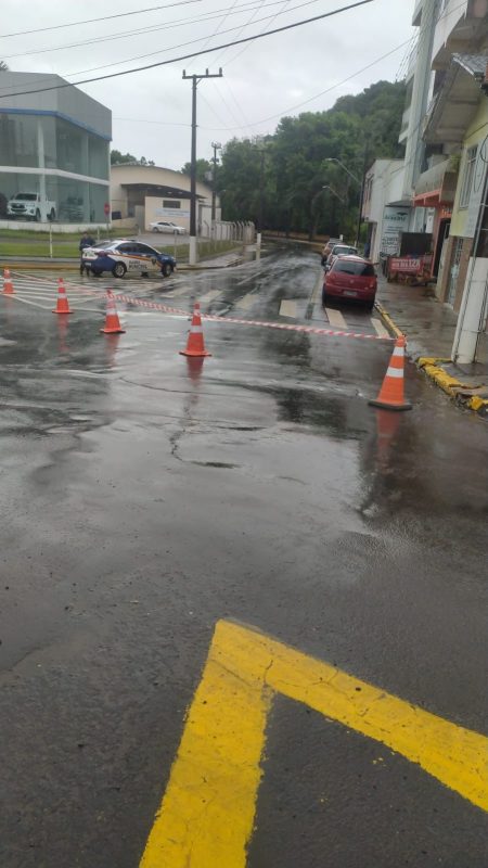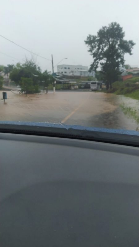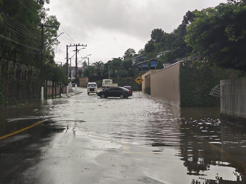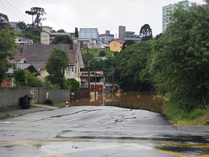 Segundo o Instituto Brasileiro de Meteorologia (INMET), em 36 horas (até às 10h desta sexta-feira), foram registrados 116,6 mm de precipitação, isso é à média prevista para todo o mês de novembro. Em 24 horas, foram 64,4 mm de chuvas. – Foto: Prefeitura de Caçador/ND - 2 de 7