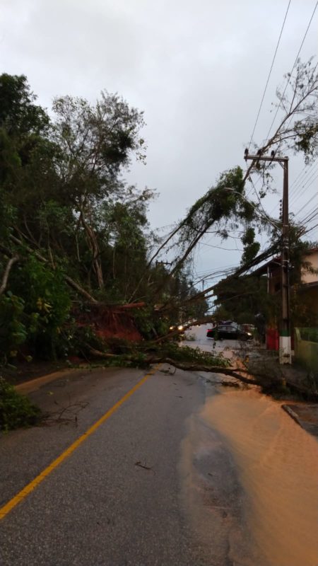 Além do rio que transbordou na cidade, ao longo da terça-feira (12), queda de árvores deixaram quase três mil unidades sem energia elétrica entre o final da tarde e a noite. De acordo com o que foi repassado pela Celesc, o solo encharcado resultou na queda de árvores que, por consequência, resultou na interrupção do fornecimento de energia.