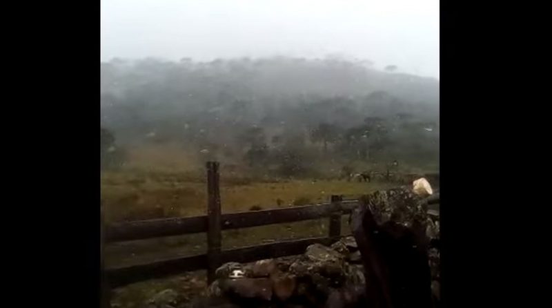 Nos outros anos também houve registros pontuais de neve, mas em menor proporção e concentrado na Serra. Mais recentemente, em agosto de 2019, houve registro de neve em flocos com intensidade fraca em São Joaquim e Urupema – Foto: Reprodução/Youtube