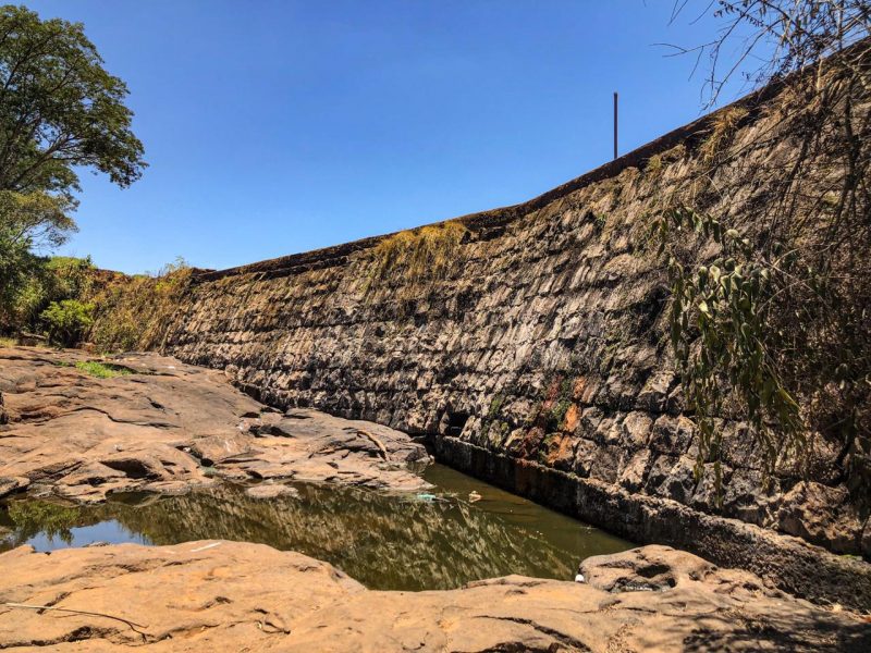 A imagem mostra a contenção da barragem que em época de chuvas vira cachoeira com a água do lajeado. - 3 de 6