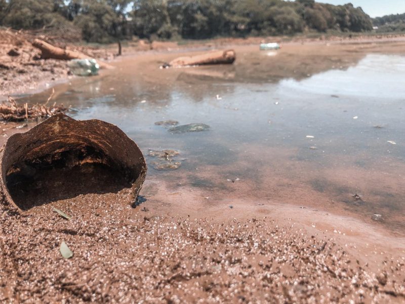 Conforme a água foi baixando, muito lixo começou a aparecer nas margens do lago, inclusive, um pneu que pode ser visto de longe. - 6 de 6