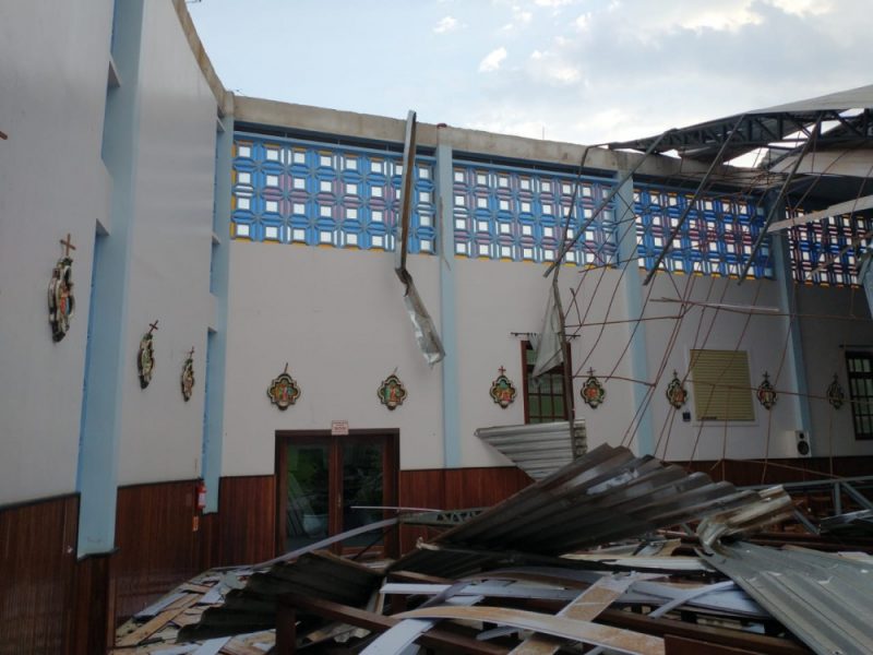 Telhado da Igreja Matriz ficou completamente destruído. – Foto: Reprodução NDA cidade teve registro de ventos, raios, trovoadas e granizo. O Corpo de Bombeiros atendeu diversas ocorrências durante a passagem da tempestade. Dezoito bombeiros foram divididos em três equipes que atenderam Barra Bonita, o centro e o interior de Guaraciaba. A instituição fez 45 entregas de lonas nessas localidades.