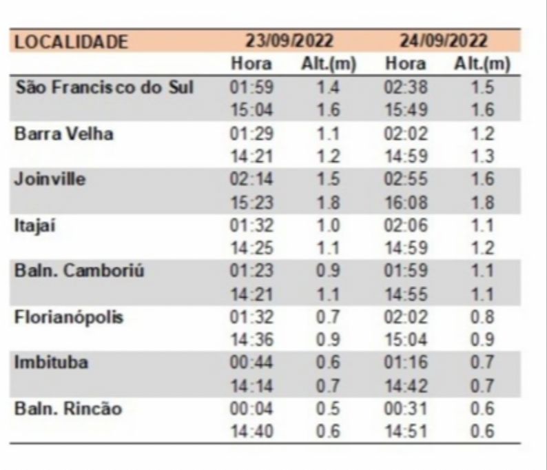 A Epagri/Ciram fez um alerta de maré alta para todo o Litoral catarinense. Além do Rio Tavares, as regiões afetadas na Capital são o Centro-Sul, a avenida da Saudade e as praias do Sul da Ilha. Cidades como Barra Velha, Araranguá, Itajai, Joinville também têm previsão de registrar o fenômeno até as 17h deste sábado (24).