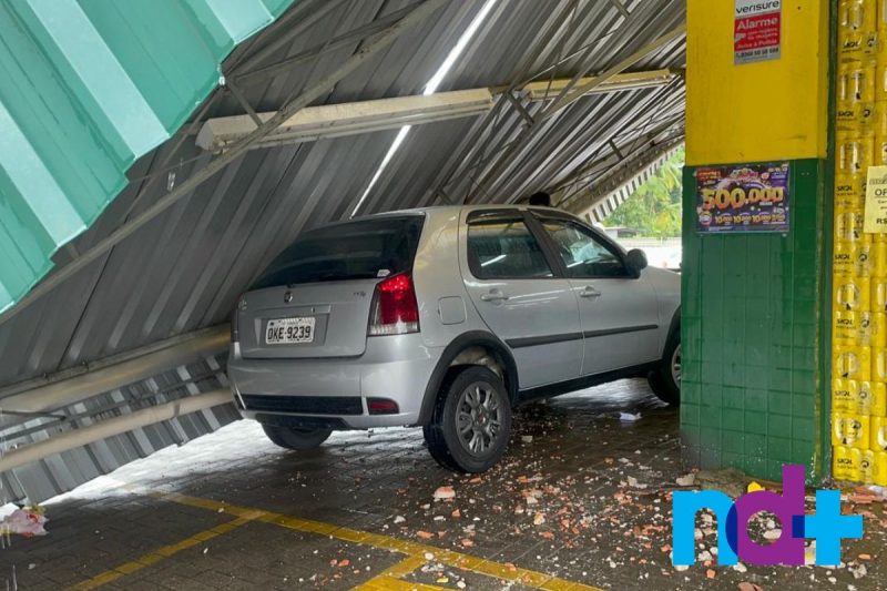 Por conta da chuva, uma estrutura de metal em um mercado de Pirabeiraba desabou e caiu sobre um carro, que não chegou a ser atingido. O estabelecimento funcionava no momento do incidente. Ninguém ficou ferido.