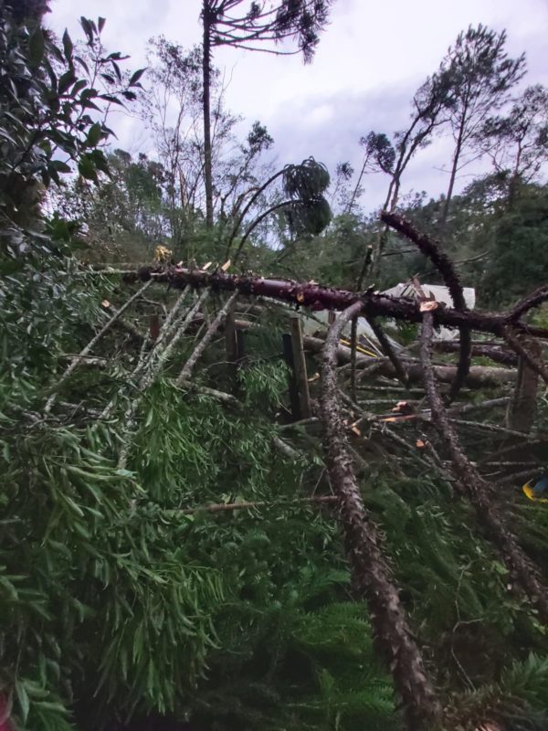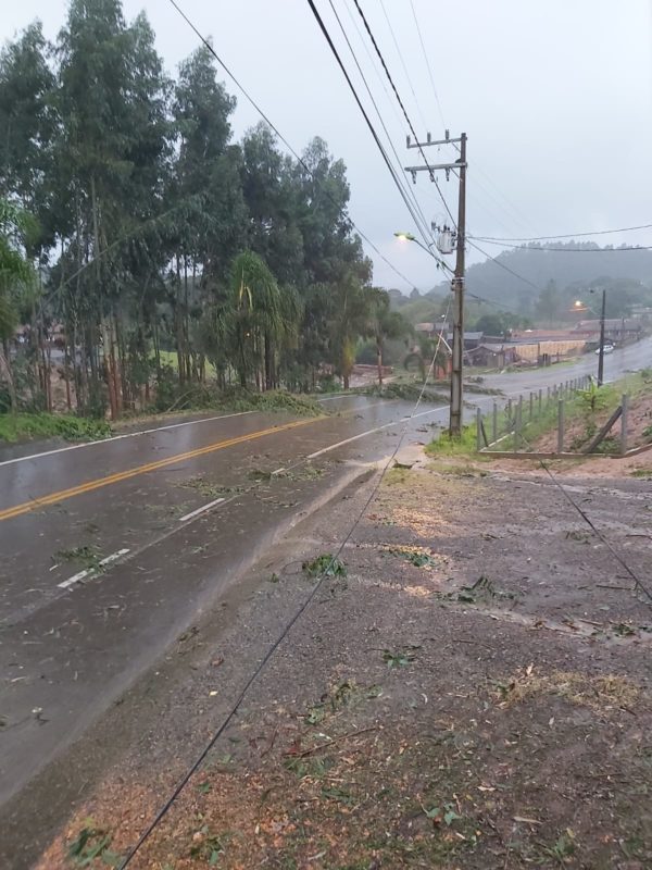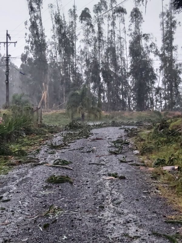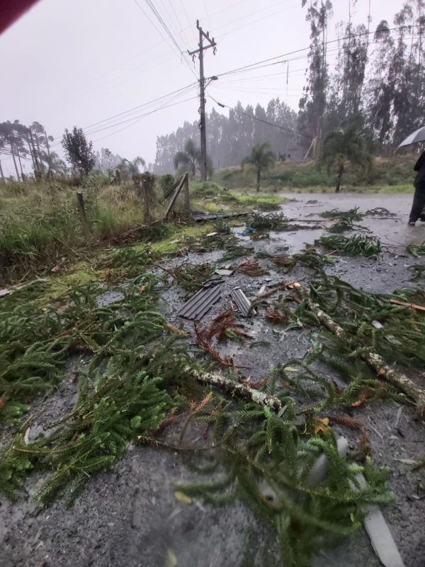 “Tivemos bastante árvores caídas em residências e galpões, bastante destelhamentos. Na manhã de segunda, estamos formando uma força-tarefa com a Secretaria de Obras para fazer um levantamento”, diz André Stefanes, coordenador da Defesa Civil da cidade.