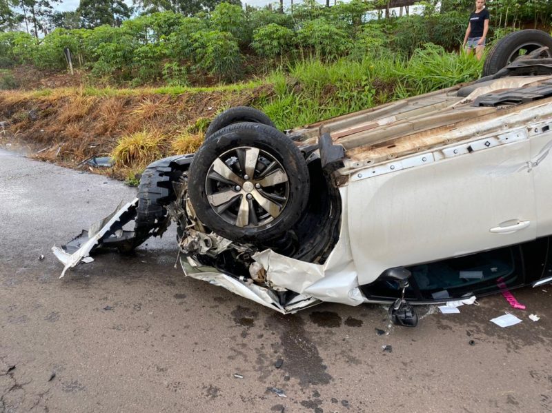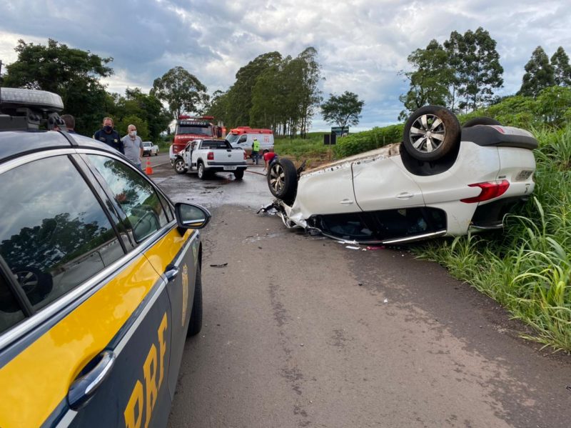 Para o portal Peperi, a motorista do Peugeot disse que ia para o trabalho quando a Saveiro invadiu a pista e ocorreu a batida. O carro dela chegou a capotar na rodovia. – Foto: Cristian Losch/ Portal Peperi/ND - 4 de 4