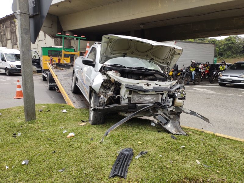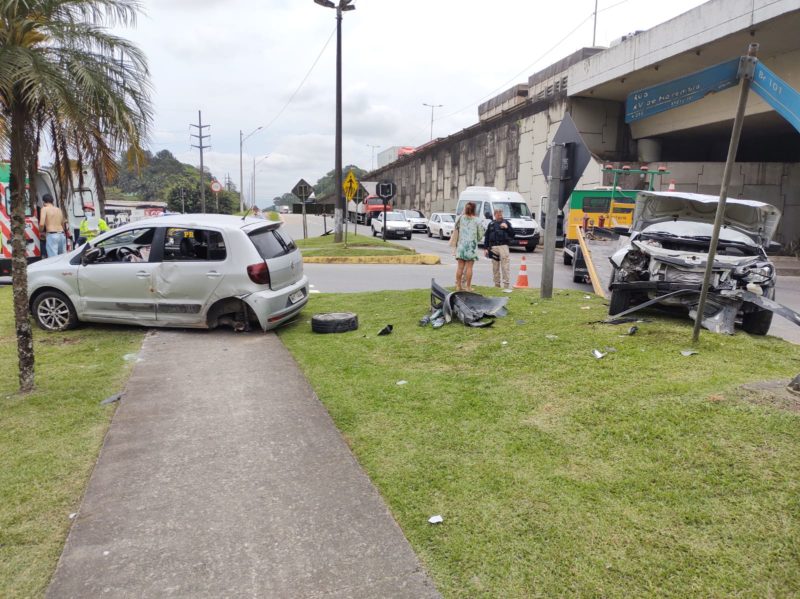 O acidente aconteceu no fim da manhã, no viaduto da marginal da BR-101, no bairro Vila Nova. Um carro não parou na rotatória e atingiu outro veículo que seguia sentido Centro-bairro. Com o impacto, o carro chegou a capotar e parar no canteiro.