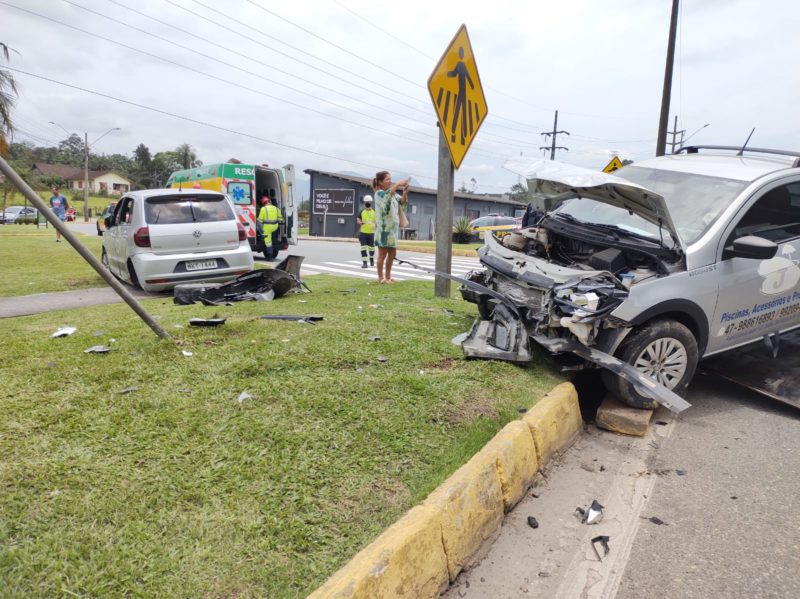 A manhã desta quarta-feira (17) foi de acidentes nas ruas de Joinville, no Norte de Santa Catarina. Depois de um carro capotar na região Central e quase invadir um comércio, outro acidente foi registrado em uma das principais entradas da cidade.
