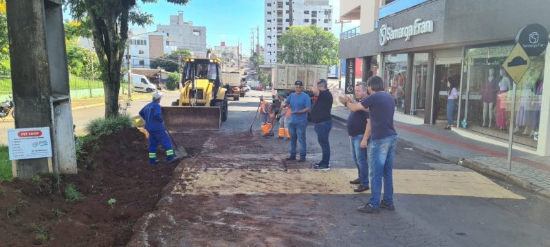 “Com isso vamos manter o estacionamento e alargar a faixa de trânsito em mais de dois metros”, informou o secretário. – Foto: Prefeitura de Chapecó/Divulgação/ND - 5 de 5