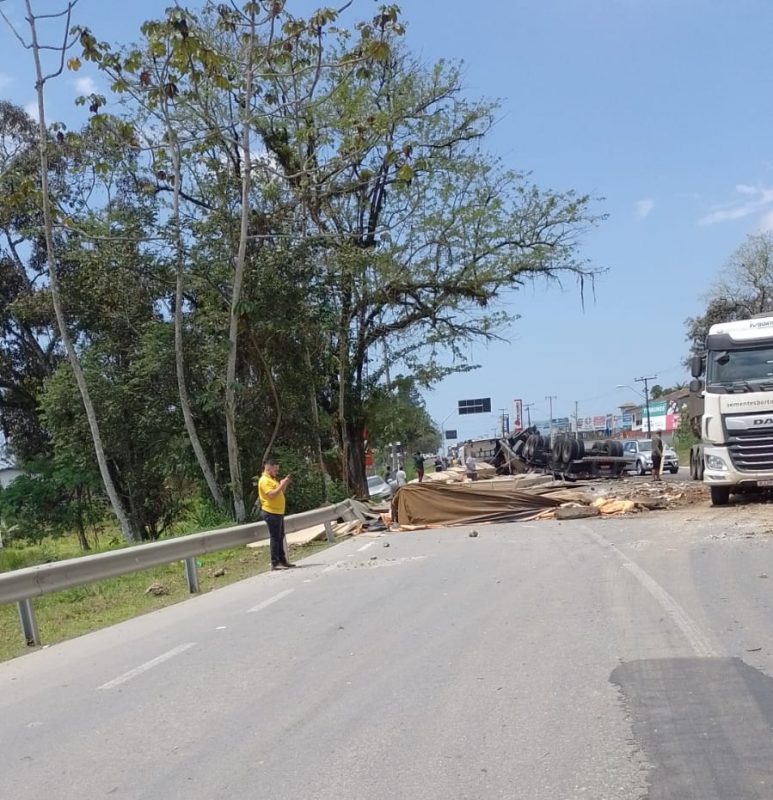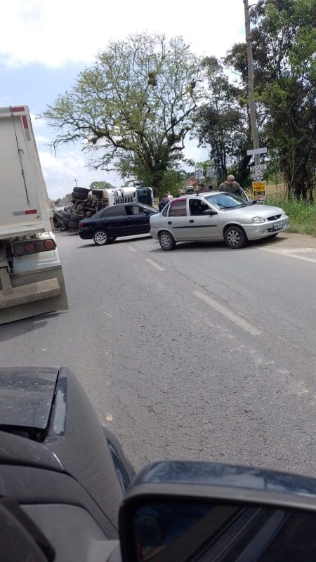 Um acidente envolvendo um carro e um caminhão-trator e seu semirreboque parou o trânsito no Km 31 da BR-280, no bairro Itinga, em Araquari, Norte de Santa Catarina, nesta sexta-feira à tarde.