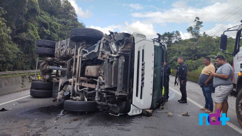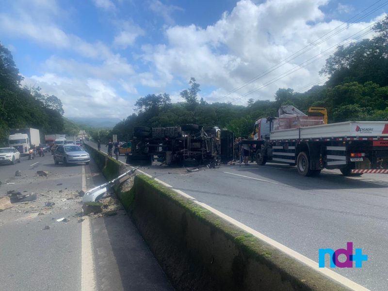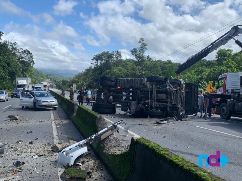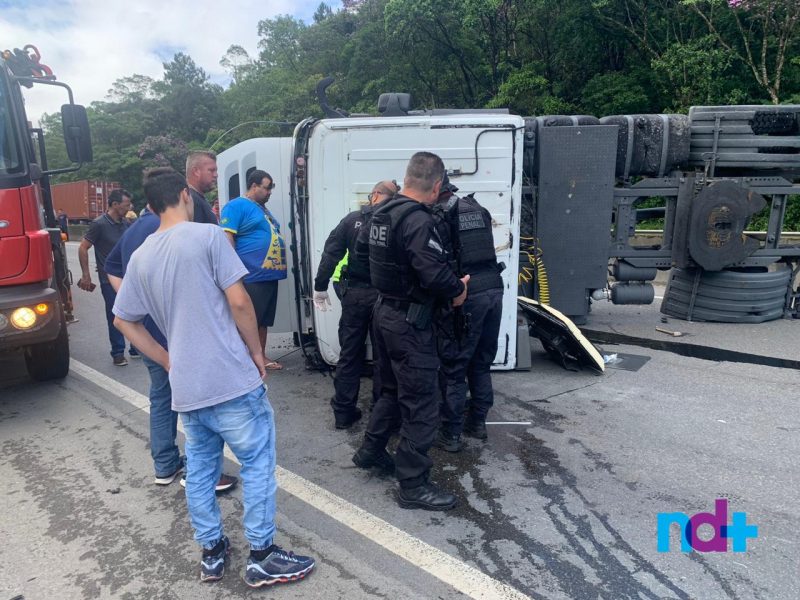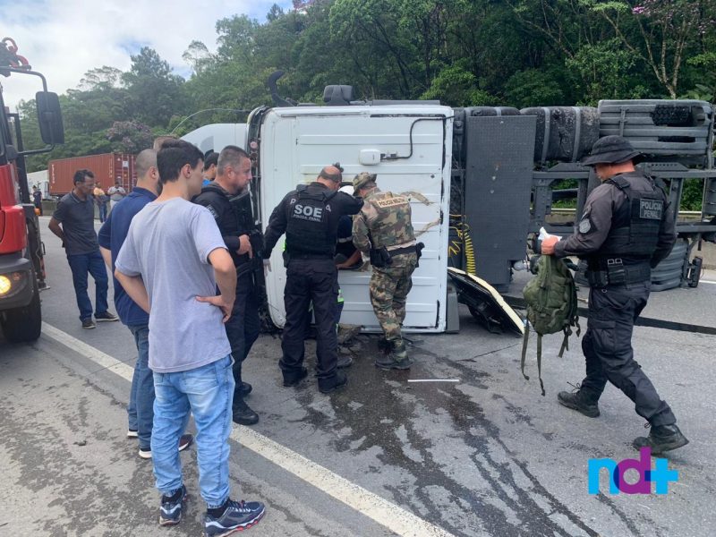 O acidente ocorreu por volta das 9h, no km 29 sentido Norte da rodovia. O caminhão perdeu o controle, bateu na mureta que separa as pistas e tombou. Policiais penais que passavam pelo local auxiliaram no resgate do motorista, que foi socorrido consciente, mas com suspeita de fratura no braço.