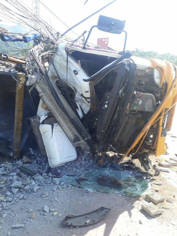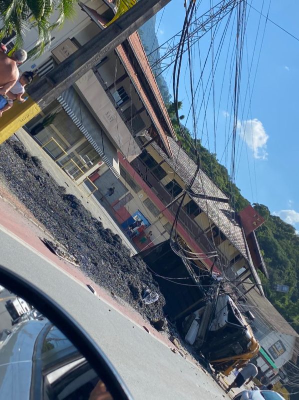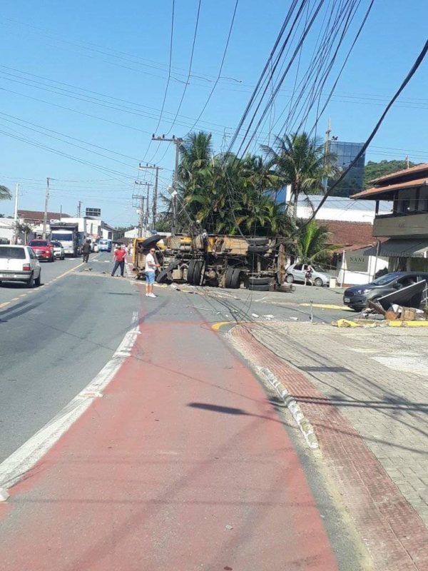 O caminhão ficou com a lateral direita no chão e a cabine do motorista ficou amassada e destruída após as batidas. A Polícia Militar e o Corpo de Bombeiros Voluntários de Jaraguá do Sul estão no local. Ainda não se sabe o motivo do acidente.